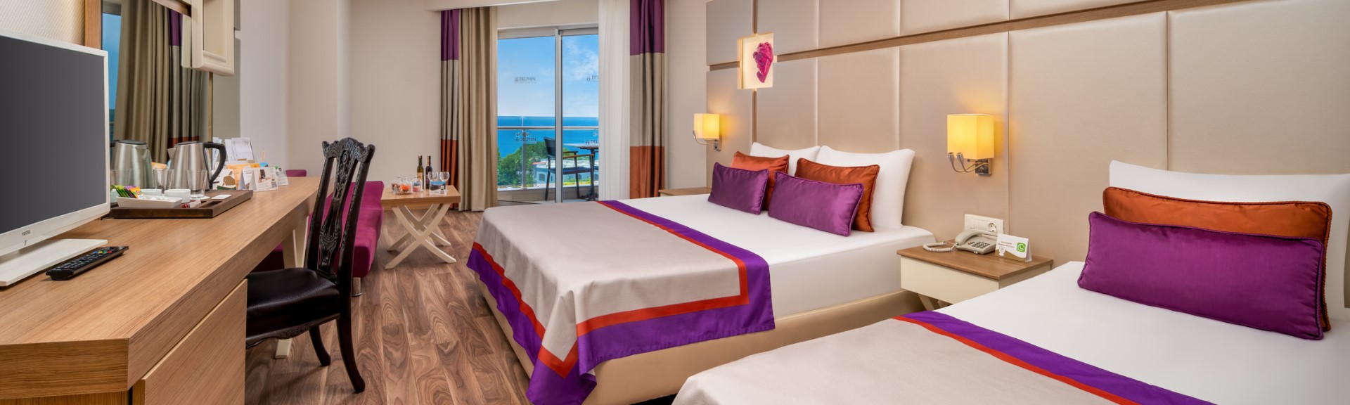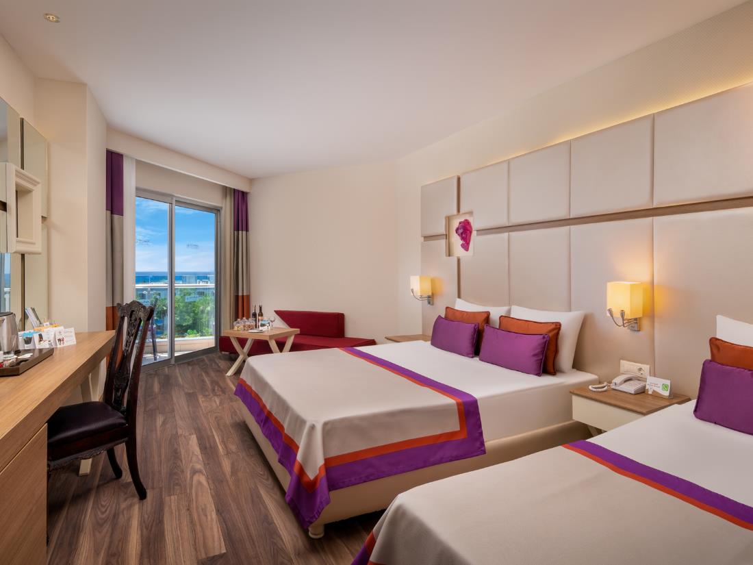 There are only 5 rooms of this room type in our facility.. have the same features as the standard rooms, an emergency button, shower / WC are available. The rooms have Land View. Technical details: door 80 cm, balcony door: 85 cm, the elevator door: 80 cm, bathroom door: 80 cm, The reception, restaurants, swimming pools and the beach are accessible with a wheelchair.