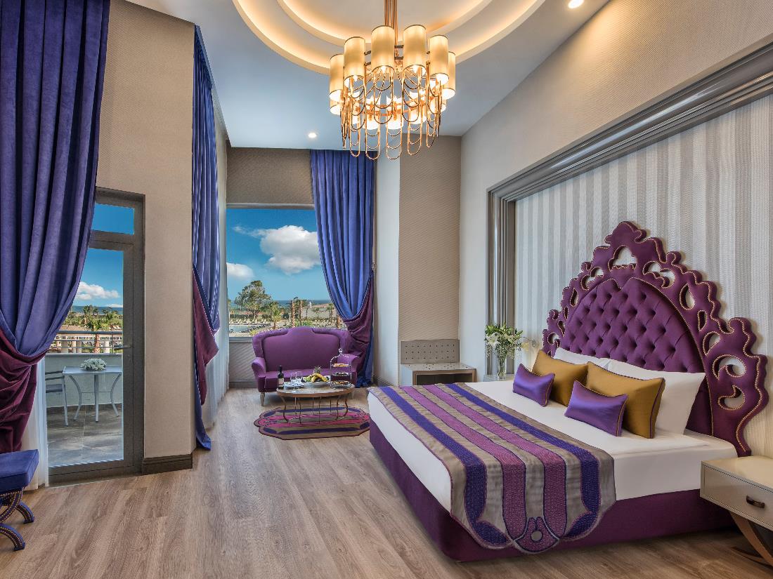 Be Deluxe Loft Room in Delphin Be Grand has a large bedroom and a bathroom. The rooms are very spacious and there are one double bed, one single bed, and one sofa. In the rooms with high ceiling, you can find shower systems with 24/7 access to hot water. Also, there is a hairdryer that you can use after showering for personal care. You can find central air conditioners that work between certain hours, LCD televisions that allow you to watch the satellite channel whenever you want, and direct phones that you can connect to the hotel reception. In addition; safe, mini bar, kettle, tea, and coffee are among the services of the hotel. Rooms are cleaned daily and towels are changed every day. Sheets are changed every two days. Be Deluxe Loft Rooms in the hotel have balconies and all rooms have land and side sea views. You can benefit from free and unlimited Wi-Fi services. The rooms have laminate flooring and the maximum accommodation in the rooms is determined as 2 adults. During the hotel reservation, you can benefit from the extra services according to your accommodation type.